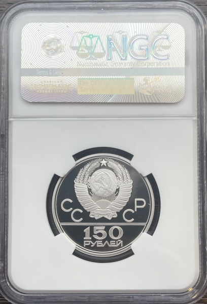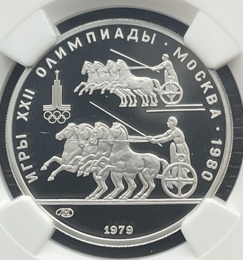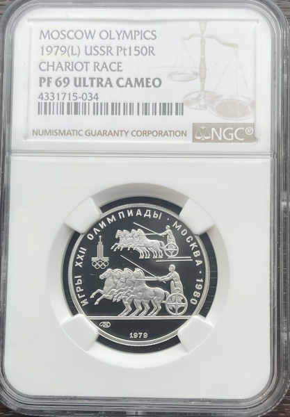 Платиновая монета 150 рублей "Античные колесницы" 1979г. ЛМД в слабе NGC PROOF 69 ULTRA CAMEO