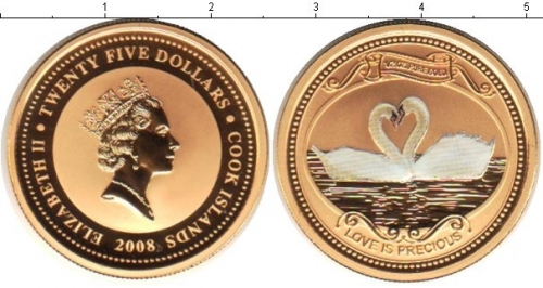 Монета 25 долларов 2008 Лебеди Любовь бесценна Острова Кука ( Лебеди )