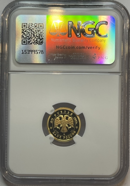 Золотая монета "Русский балет", 25 рублей, 1993 год, 3,11г., Au 999, ММД, в слабе NGC PROOF 70 ULTRA CAMEO